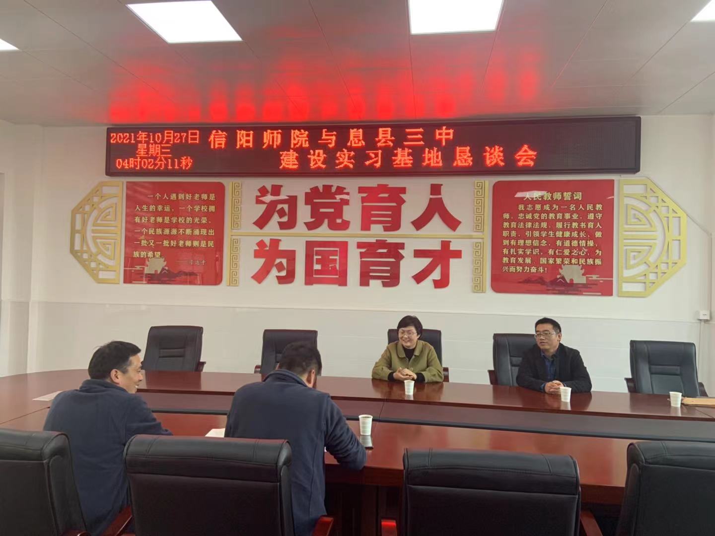 10月27日,信阳师范学院yL23411永利官网登录代表我校教务处,与息县五所中学顺利签署毕业生实习基地建设合作协议。