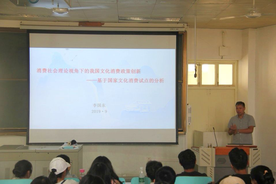 927日下午,yL23411永利官网登录在人文楼609教室开展了本年度第五场人文视野讲座,讲座主题为“消费社会理论视角下的我国文化消费政策创新---基于国家文化消费试点的分析”,主讲人为yL23411永利官网登录教师李国东博士。20172018级文化产业管理专业全体学生到场听讲。