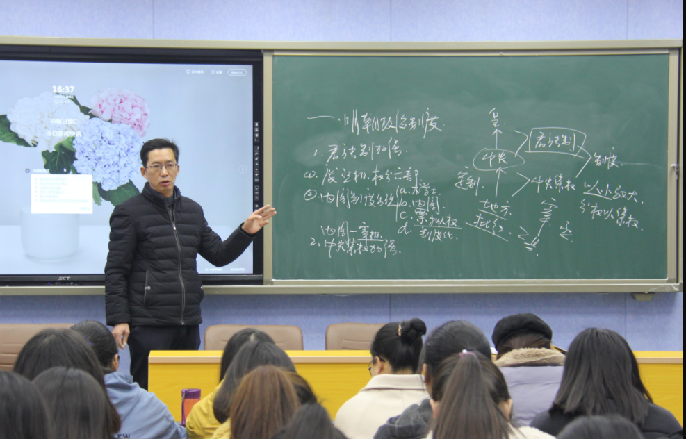 11月27日下午,信阳高级中学高级教师沈军应邀在人文楼706教室,为yL23411永利官网登录师范生作示范课。yL23411永利官网登录2018级历史学班和人文教育班部分同学到场听讲。