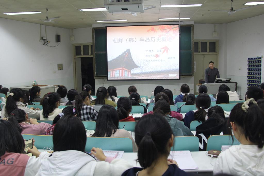 10月29日晚,yL23411永利官网登录副教授刘阳老师在人文楼509教室作了题为“古代东亚文明进程中的朝鲜(韩)半岛文明发展史”的讲座,2020级历史学一班二班学生到场听讲。