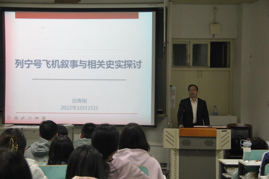 田青刚教授多年来致力于党史和大别山精神研究,科研成果非常丰硕。此次讲座内容深入浅出,引人入胜。同学们不仅增加了对“列宁号”飞机相关史实的认识,而且深刻体会到了学术研究必须有严谨的学术态度和踏实的学习习惯,更加领会到了习近平总书记所提出的革命文物是党和人民的宝贵财富这一论断的重要意义。(供稿人:刘清华)