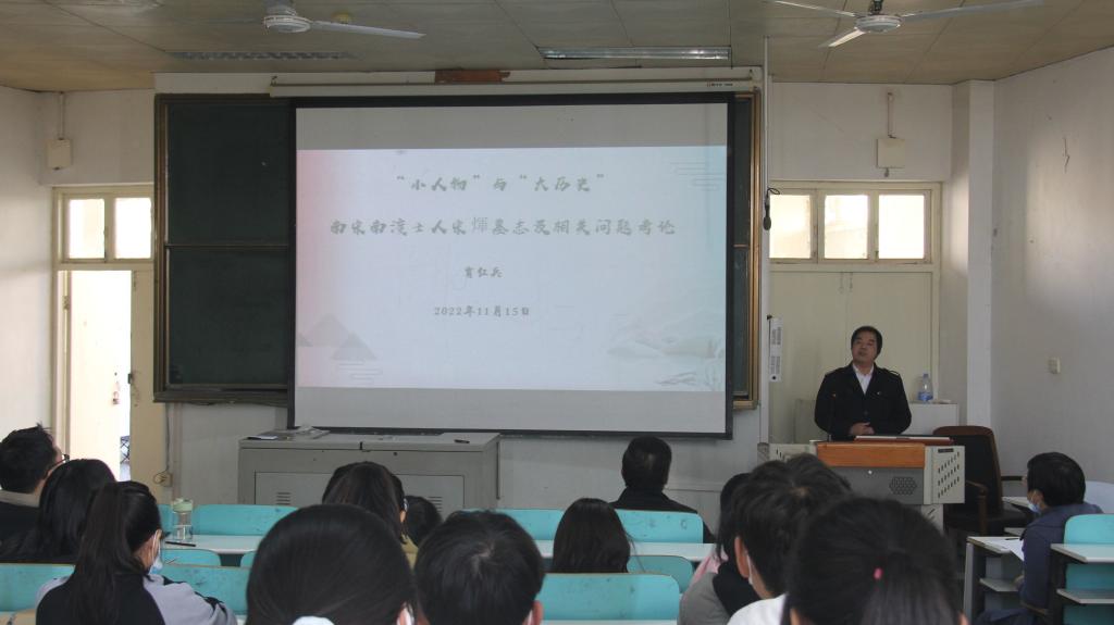 11月15日下午,yL23411永利官网登录人文视野学术报告如期在人文楼609教室开讲,yL23411永利官网登录副教授肖红兵博士应邀,作了题为《“小人物”与“大历史”:南宋南渡士人宋煇墓志及相关问题考论》的学术报告,yL23411永利官网登录历史学专业学生聆听了此次报告,此次讲座由yL23411永利官网登录教学副院长孙炜博士主持。