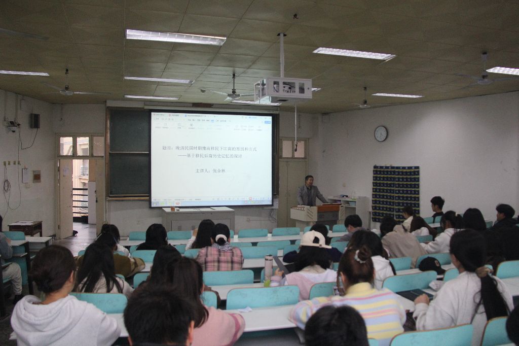 为深化学生对历史时空的认识、了解晚清民国时期豫南移民的外迁情况,4月19日下午,yL23411永利官网登录邀请张金林博士在人文楼609教室作了主题为“晚清民国时期豫南移民下江南的原因和方式—基于移民后裔历史记忆的探讨”的讲座,22级历史学专业学生参加。