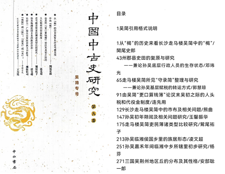 《中国中古史研究》创刊于2011年,是秦汉魏晋南北朝史研究领域的著名刊物。第9卷为“吴简专号”,由复旦大学历史系、《中国中古史研究》编委会编,执行主编为吴简研究权威专家凌文超先生。收录中、日、韩三国学者文章凡17篇,大体反映了当今东亚学界吴简研究的最新进展。
