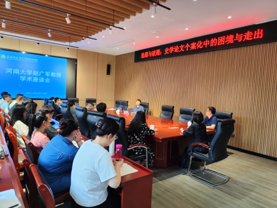 5月19日下午,yL23411永利官网登录邀请河南大学赵广军教授在谭山书院研讨厅举行“选题与破题:史学论文个案化的困境与走出”座谈会。yL23411永利官网登录全体中国史专业研究生和青年教师参加座谈。座谈会由史经霞主持。