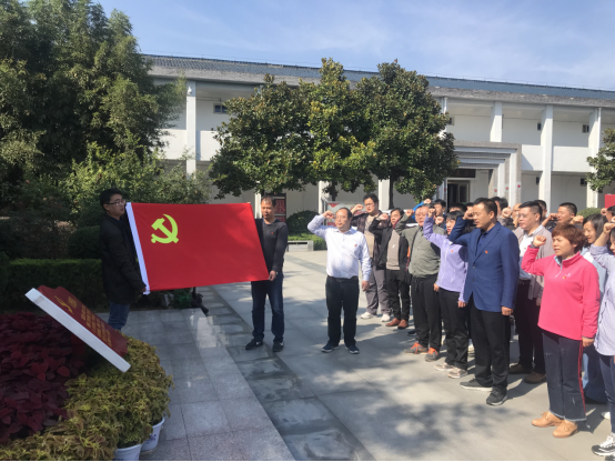 首先是参观竹沟革命纪念馆,大家在讲解员的带领下,依次参观了竹沟革命历史展览,还参观了中央中原局、河南省委、新四军四支队八团队各机关、彭雪枫办公室等旧址。在刘少奇等塑像前,党委副书记刘喜元带领大家进行重温入党誓词。随后,又至竹沟革命烈士陵园凭吊先烈。