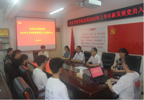 为深入学习贯彻党的二十大精神,掀起推动学习贯彻习近平新时代中国特色社会主义思想主题教育新高潮,结合2023年党员发展工作相关部署安排,6月21日上午,yL23411永利官网登录党委于人文楼805会议室召开2023年上半年新发展党员入党宣誓大会。党委书记李辉、党委副书记韩志宏,学生党支部书记付亚男、邓皓、吴慧娟以及2023年上半年新发展党员、转正党员及入党积极分子代表参会。