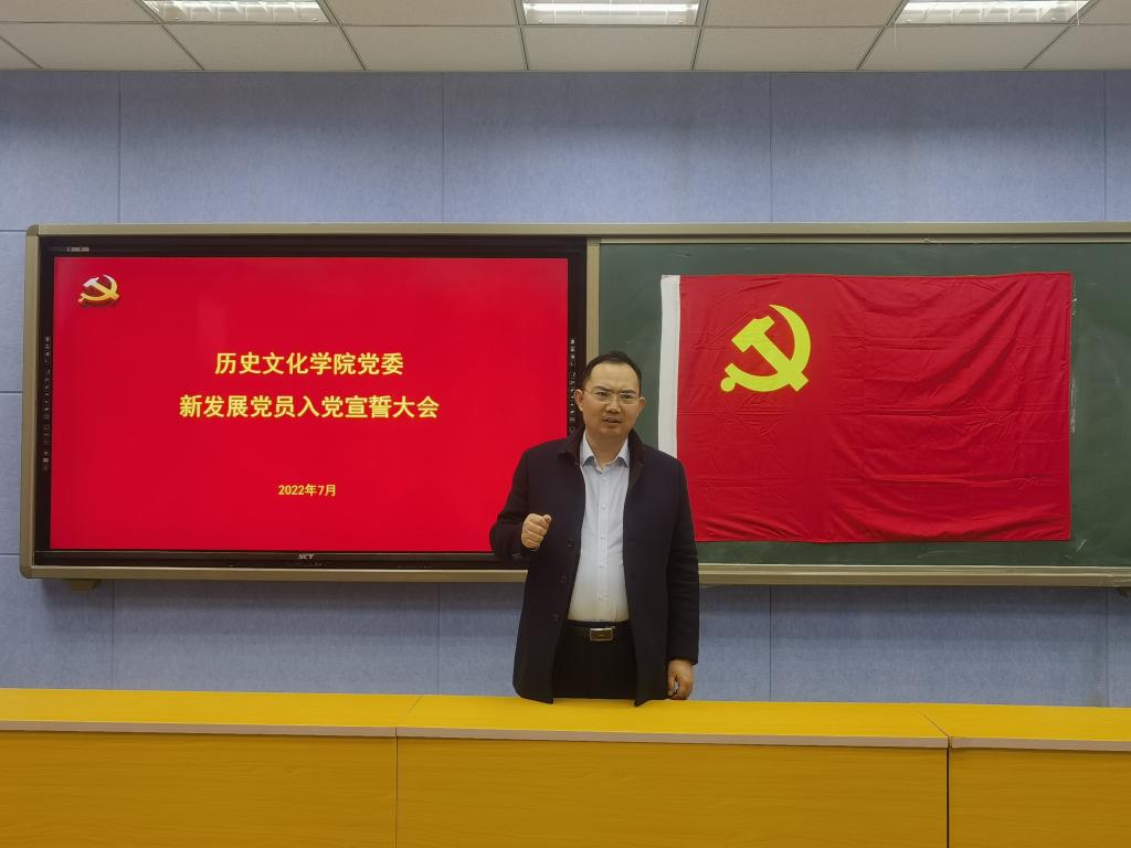 近日,yL23411永利官网登录在人文楼706教室举行了2022年上半年预备党员宣誓大会,院党委副书记韩志宏,党支部书记付亚男、邓皓、吴慧娟,2022年上半年新发展党员、转正党员及部分入党积极分子参加。大会由邓皓主持。