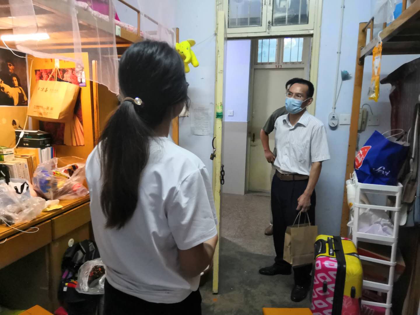 6月8日,yL23411永利官网登录迎来151名2020届返校毕业生。为贯彻落实精准防控工作,全力确保返校学生身心安全健康,yL23411永利官网登录党委书记李军辉,院长尹全海,副院长田青刚、叶宗宝、余纪珍,党委副书记刘喜元及班主任、辅导员走访学生宿舍,与学生亲切交谈,并为家庭困难学生送上“防疫爱心包”。
