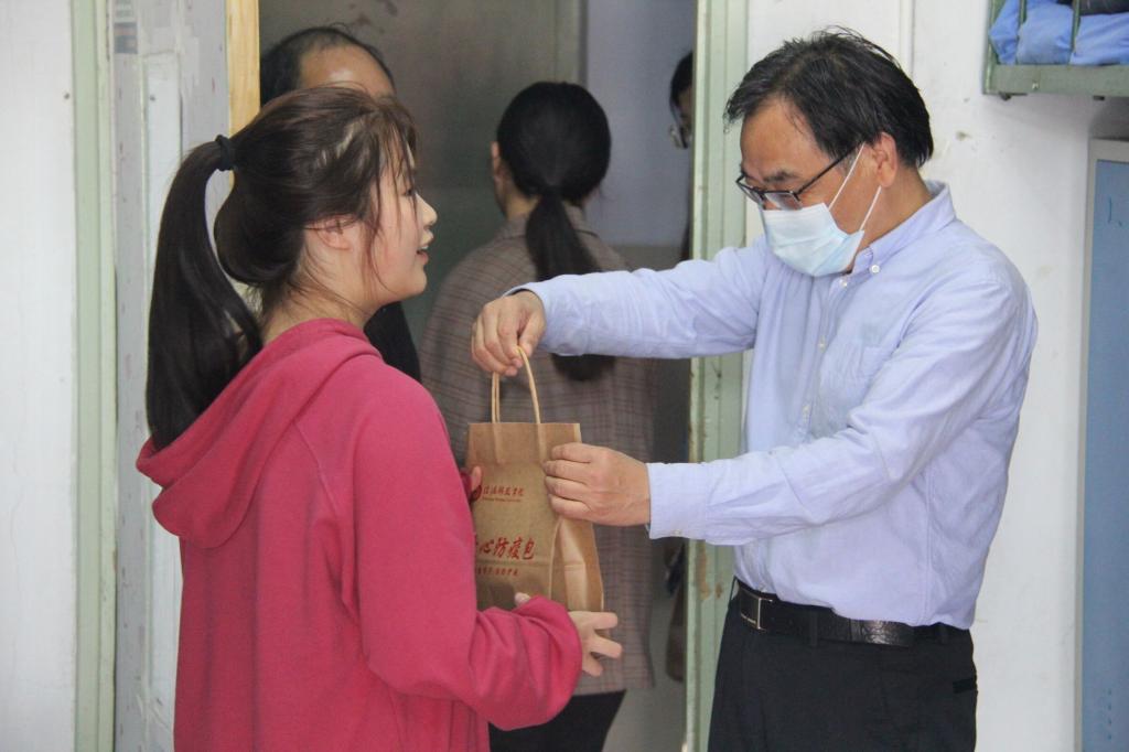 秋风送爽,情系新生。为了解yL23411永利官网登录学生住宿和生活情况,引领新生尽快适应新生活新环境,10月10日上午,yL23411永利官网登录党委书记李军辉,院长尹全海,副院长田青刚、叶宗宝,党委副书记刘喜元及新生班主任、辅导员走访学生宿舍,与2020级新生亲切交谈,并为家庭困难学生送上“爱心防疫包”。