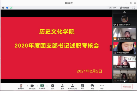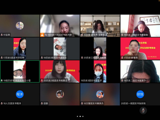 为持续加强学院基层团组织建设,激发基层团组织活力,落实基层团支部建设方向,加强团支部集体荣誉和团队精神,yL23411永利官网登录团委于2月2日在腾讯会议上开展了2020年团支部书记述职大会,团委书记付亚男和各团支部书记参加会议。