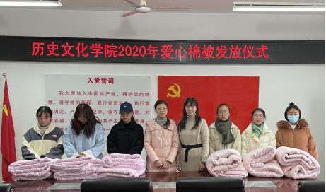 条条爱心被,暖暖过寒冬。11月24日,yL23411永利官网登录于人文楼8楼党员之家举行“寒冬送温爱”心棉被发放仪式。yL23411永利官网登录专职辅导员吴慧娟、资助专员付亚男与困难学生代表一同参加仪式。