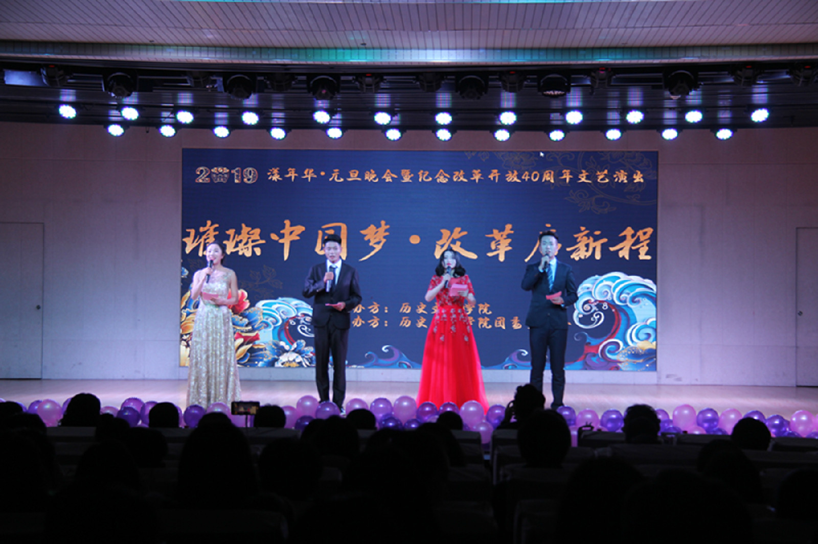 12月26日晚,yL23411永利官网登录“璀璨中国梦,改革启新程”2019年元旦晚会暨纪念改革开放四十周年文艺演出在校理科楼报告厅隆重举行。yL23411永利官网登录院长尹全海,副院长田青刚、叶宗宝、余纪珍,副书记刘喜元和yL23411永利官网登录全体在校教师及四百余名学生共同观看了本次晚会。