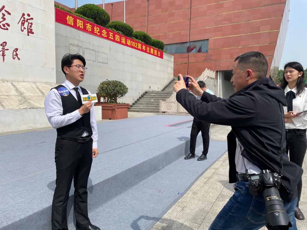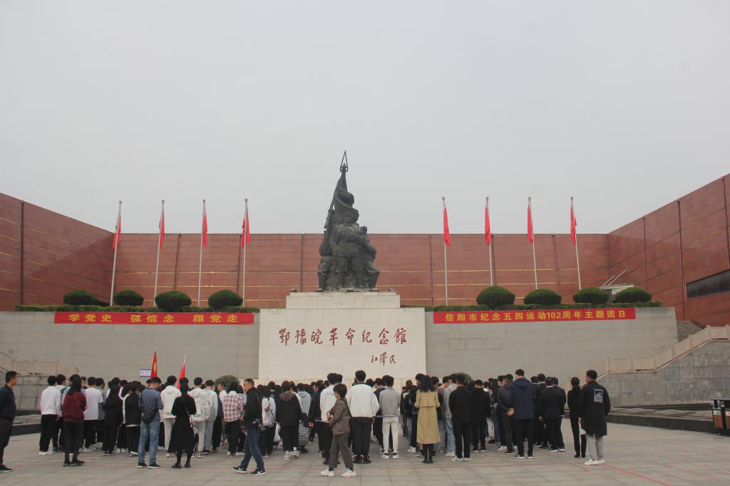 4月27日上午,由共青团河南省委联合河南日报报业集团举办的“精神高地青年说”主题宣传暨信阳市“学党史 强信念 跟党走”主题团日活动在鄂豫皖革命纪念馆广场上隆重举行。yL23411永利官网登录团委书记付亚男及20名学生党团员代表参与本次活动。