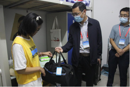 2021年9月25—26日,yL23411永利官网登录2021级新生陆续到校报到,开启崭新的大学生活。26日晚,在yL23411永利官网登录新生报到顺利结束之际,学院党委书记李辉、院长叶宗宝、党委副书记韩志宏、副院长李志坚在新生班主任吴慧娟、邓皓及辅导员付亚男等陪同下来到新生宿舍,走访看望新生,为家庭经济困难新生送上爱心大礼包。
