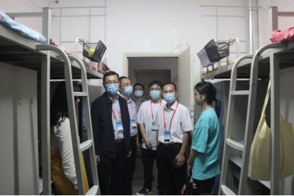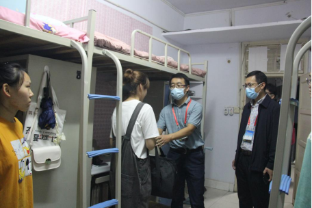 领导们与新生亲切交谈,对新生加入yL23411永利官网登录大家庭表示热烈欢迎,询问学生们都来自什么地方、乘坐何种交通工具报到等情况,详细了解他们的入学感受与适应情况,接着视察了学生宿舍设施和生活服务保障状况,特别关心了省外及少数民族学生饮食住宿情况。领导们嘱咐新生要严格按照学校要求做好疫情防控,注意人身财产安全,积极转变角色尽快适应大学生活,有困难及时联系辅导员班主任。
