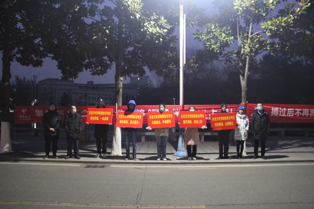 为鼓舞考研学子士气,振奋考研学子精神,12月25日清晨夜色仍浓、北风劲吹,yL23411永利官网登录党委书记李辉、院长叶宗宝、党委副书记韩志宏、辅导员付亚男、邓皓及学生党员先锋代表前往青年广场欢送考研学生参加考试。