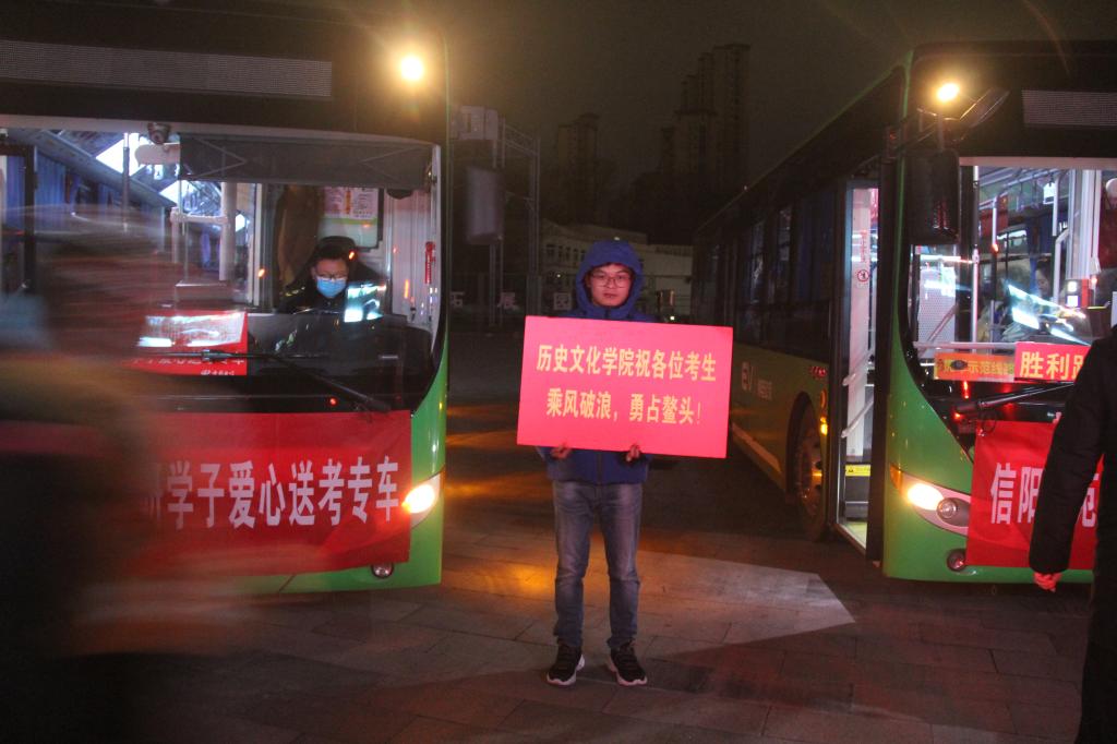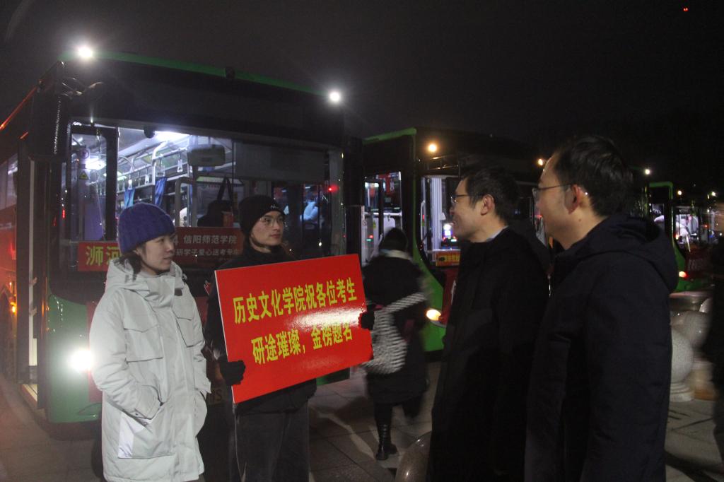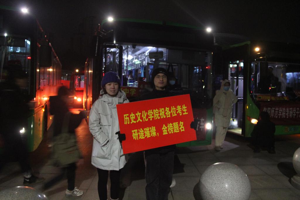 12月25日是今年全国研究生招生考试开考首日,学校统一安排在青年广场为考生提供免费大巴送考服务,确保考生顺利、安全、及时到达各个考点。为此,yL23411永利官网登录领导、辅导员和学生党员先锋代表站在前往不同考点的车辆前,帮助学生最快找到所乘车辆,为他们加油鼓劲。在考研学生乘车出发时刻,yL23411永利官网登录领导向他们挥手示意,师生齐声高喊祝福口号:研途璀璨,金榜题名,祝愿考生考试顺利。