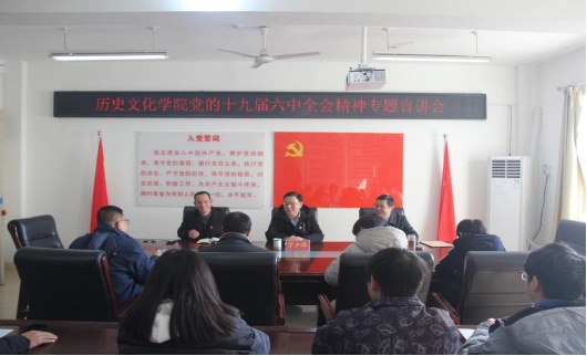 12月30日下午,校党委委员、宣传部部长丁少锋应邀为yL23411永利官网登录作党的十九届六中全会精神辅导报告。该院党委中心组成员、党支部书记、科级干部及学生代表参加。会议由yL23411永利官网登录党委书记李辉主持。
