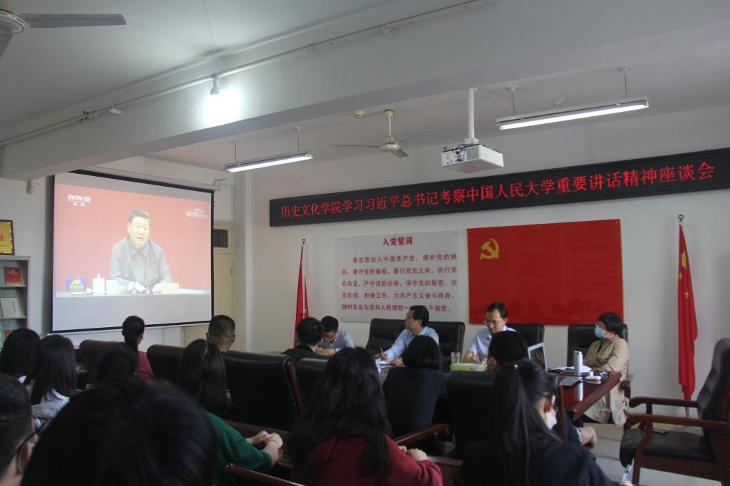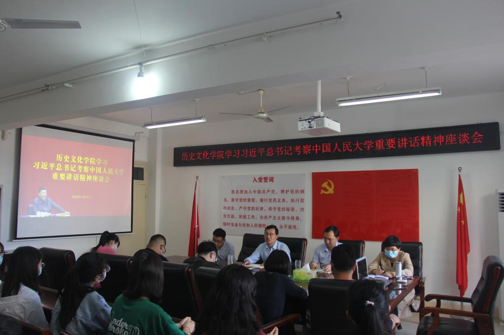 4月26日上午,yL23411永利官网登录召开学习习近平总书记考察调研中国人民大学重要讲话精神座谈会,学院党委书记李辉,党委副书记韩志宏,副院长李志坚、孙炜、史经霞与师生代表共同参加。会议由韩志宏主持。