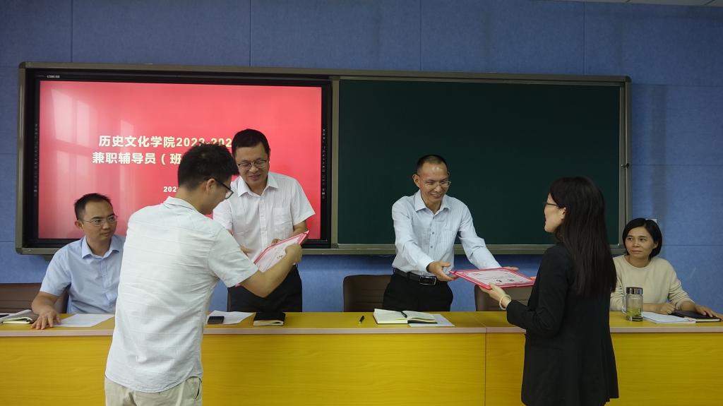2022年9月20日下午,历史文化学院于人文楼706举行2022-2023学年兼职辅导员(班主任)聘任仪式。院党委书记李辉、院长叶宗宝、党委副书记韩志宏、副院长史经霞及全体教职工参加。仪式由韩志宏主持。