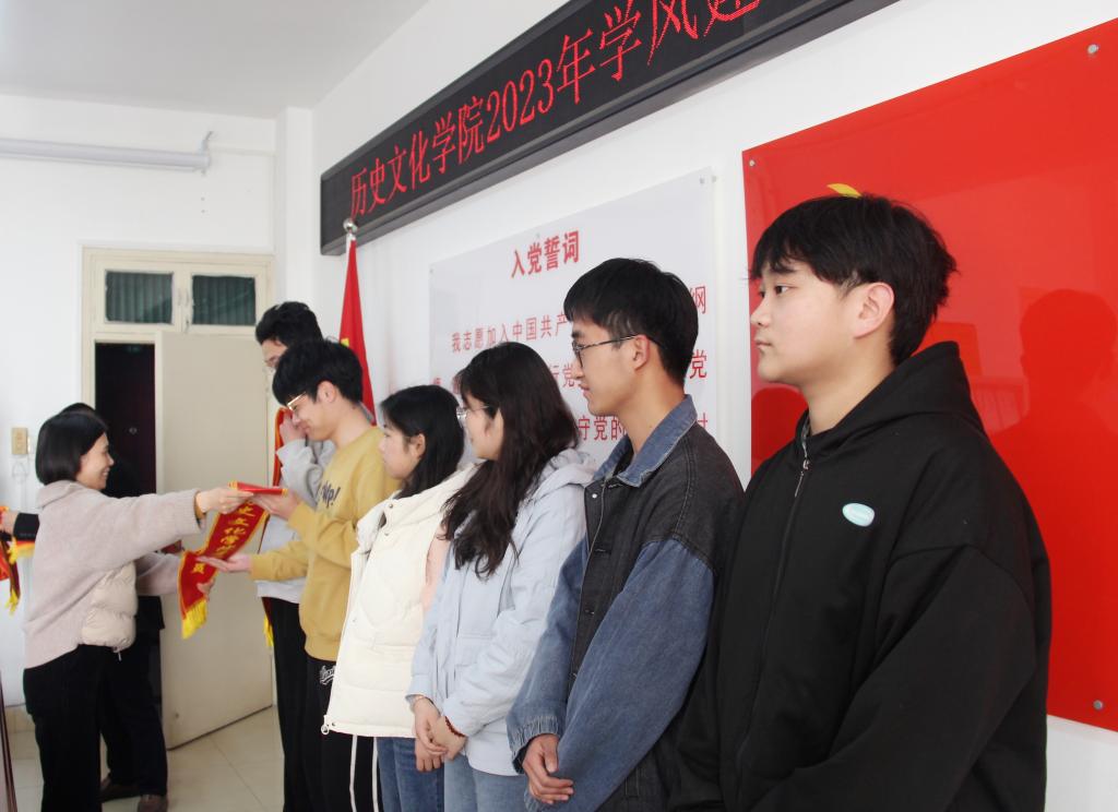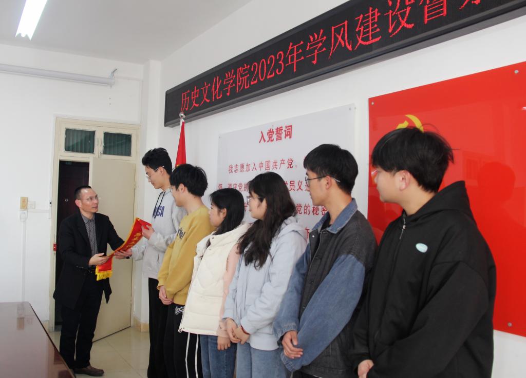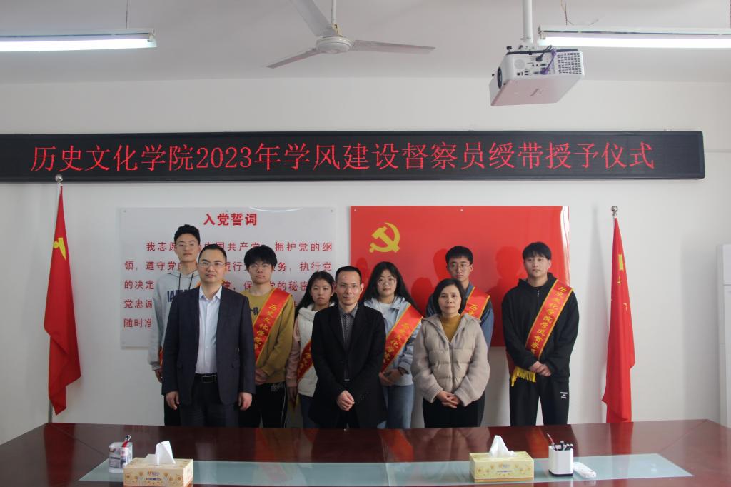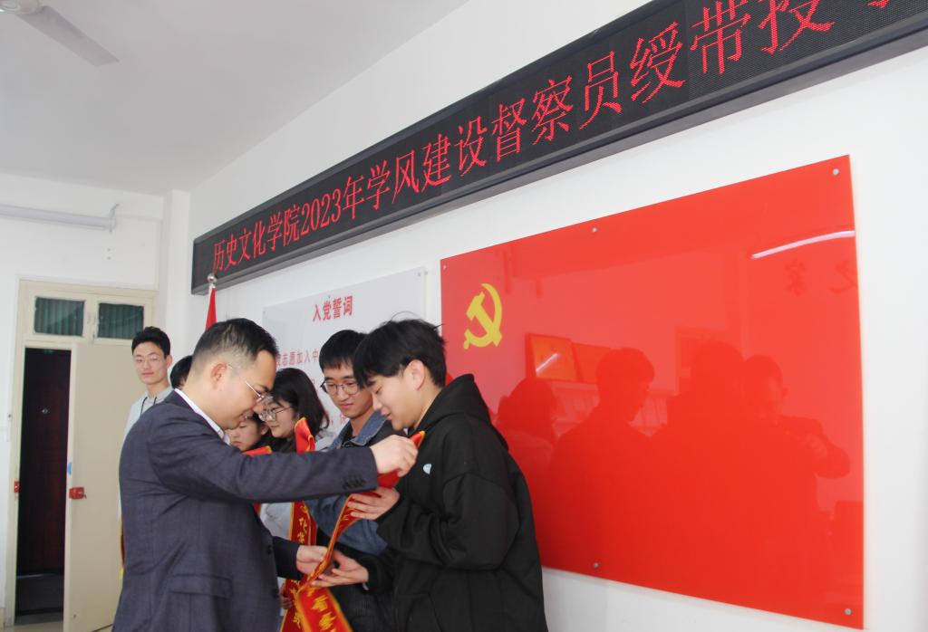 3月6日,yL23411永利官网登录于人文楼805举行学风建设督察员绶带授予仪式,院长叶宗宝、党委副书记韩志宏、副院长史经霞与学生督察员代表参加。