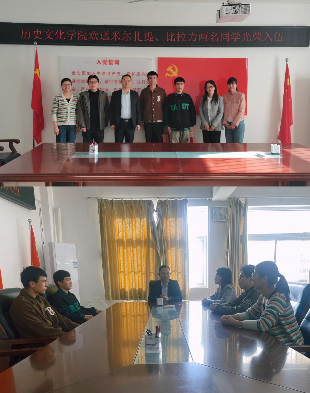 3月14日下午,yL23411永利官网登录举行欢送2022级学生米尔扎提、比拉力光荣入伍仪式,学院党委副书记韩志宏、辅导员班主任吴慧娟、付亚男、邓皓、邹维一参会。