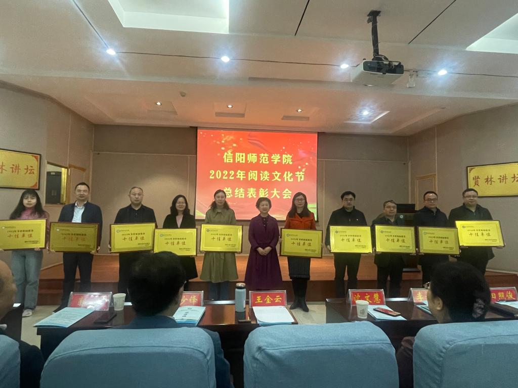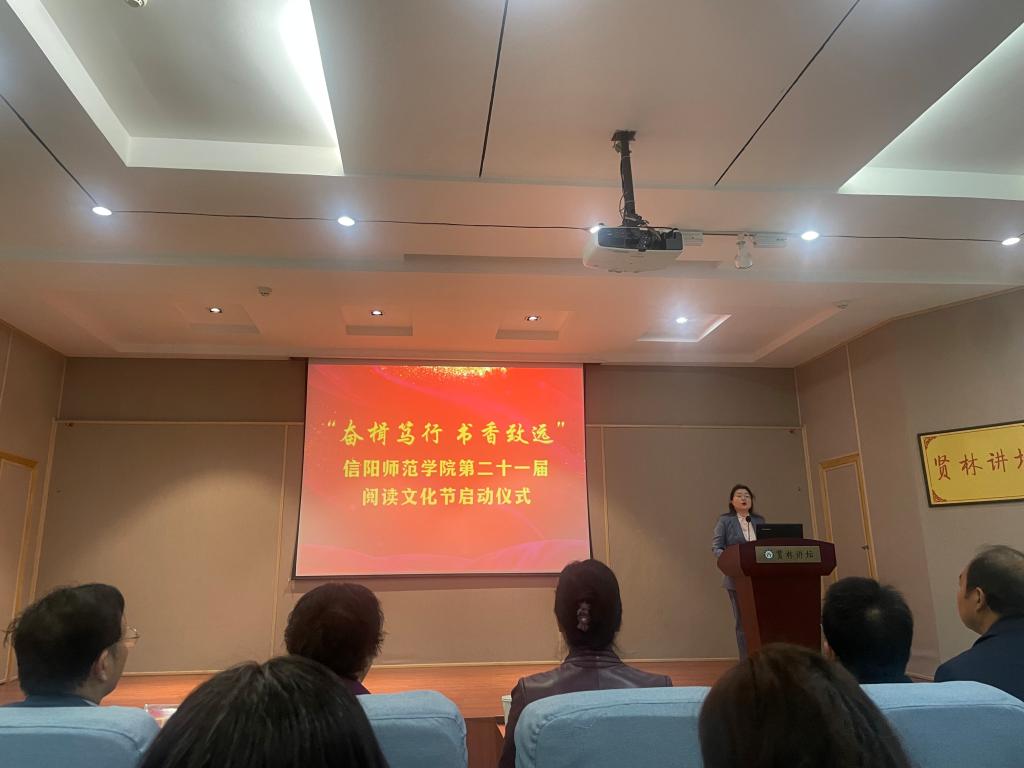 4月24日上午,我校举办信阳师范学院第二十一届阅读文化节启动仪式,副校长王金云,学校有关部门和各学院负责人以及图书馆负责同志与部分师生代表参会。yL23411永利官网登录被评为信阳师范学院2022年书香校园建设十佳单位。