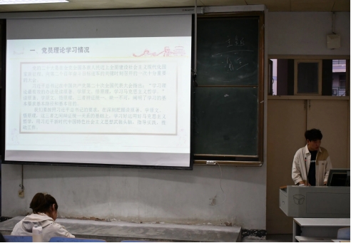 为深入学习贯彻党的二十大精神,推动学习贯彻习近平新时代中国特色社会主义思想主题教育走深走实。按照中央、省委、校党委决策部署和院党委主题教育领导小组统一要求,4月27日晚,yL23411永利官网登录党委结合第39期党员发展对象培训班教学计划,于人文楼510教室组织19级学生党员刘海博、龚丽雯为发展对象作党课宣讲。yL23411永利官网登录专职组织员邓皓、第39期党员发展对象培训班全体学员参会。