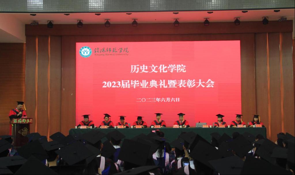 毕业典礼在庄严的国歌中拉开序幕。史经霞宣读《信阳师范学院关于授予2023届毕业生硕士学位的决定》,韩志宏宣读《信阳师范学院关于授予2023届毕业生学士学位的决定》,李志坚宣读《yL23411永利官网登录关于表彰2023届考取硕博研究生毕业生的决定》。随后,学院学位评定委员会成员及教师代表等为本硕毕业生一一扶正流苏、合影留念。