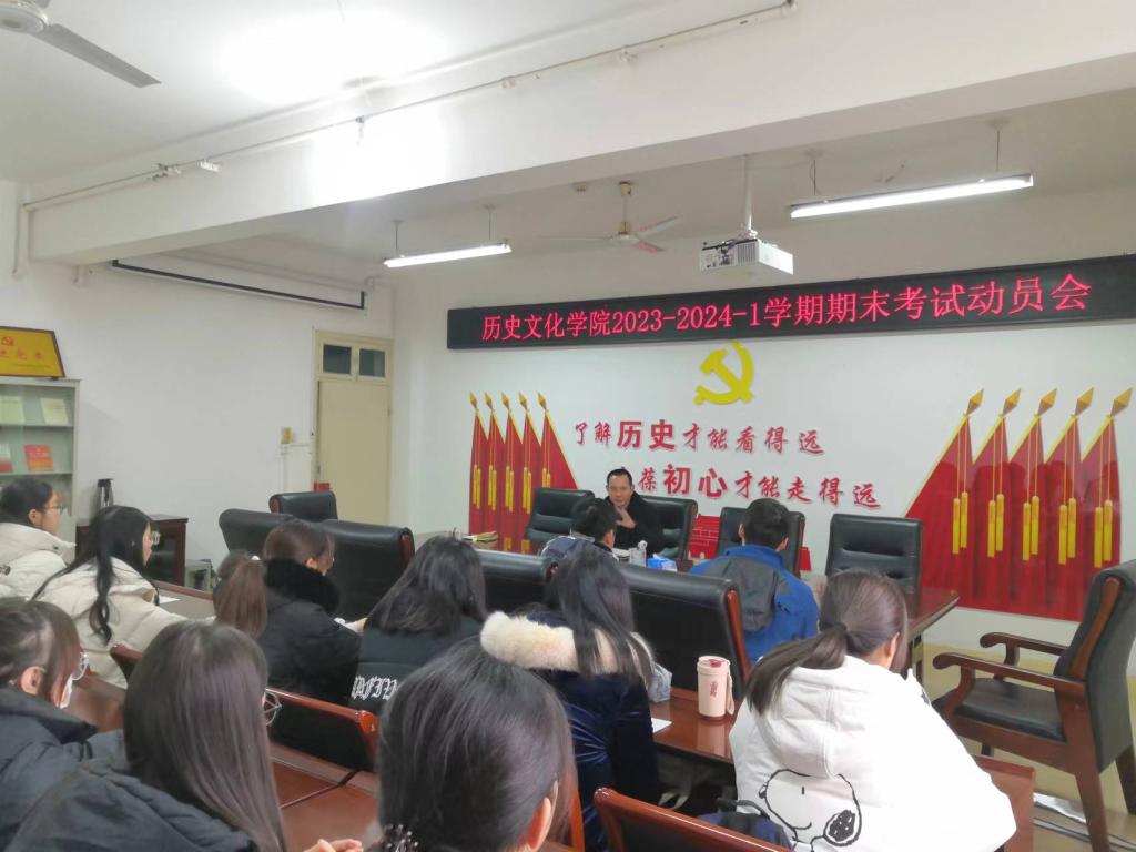 12月28日上午,yL23411永利官网登录2023-2024学年第1学期期末考试动员会在人文楼805教室召开。院长叶宗宝、教学秘书宋玉峰,各本科教学班干部代表参加会议。