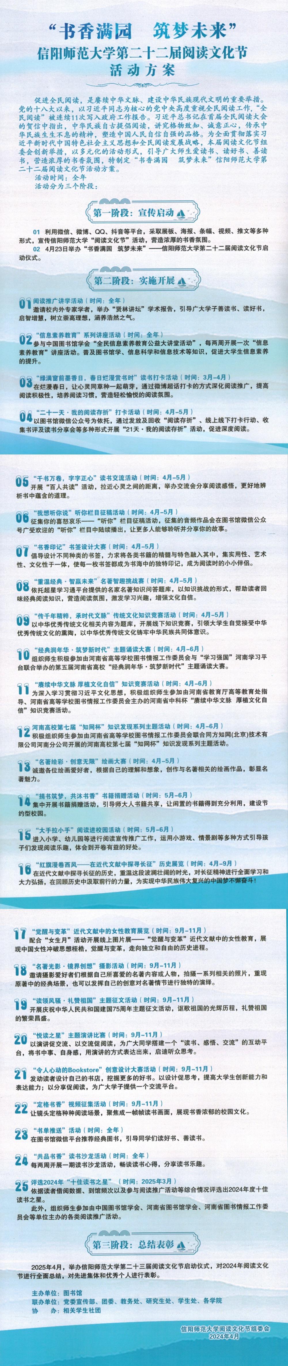 4月23日,我校于贤林讲坛举办信阳师范大学“书香满园 筑梦未来”第二十二届阅读文化节启动仪式,副校长涂友超、学校有关部门、各学院负责人、图书馆负责同志及200余名师生代表参加活动。