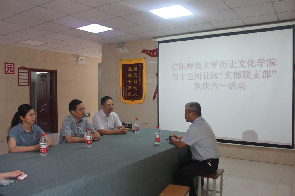 在六一儿童节到来之际,yL23411永利官网登录党委于5月31日赴信阳市浉河区十里河社区开展“支部联支部”暨欢庆六一活动,学院党委书记李辉、党委副书记韩志宏及师生党员代表参加。